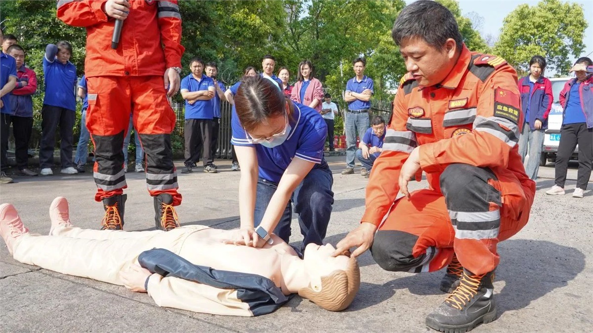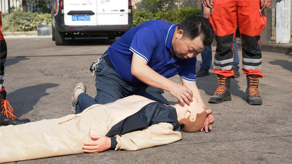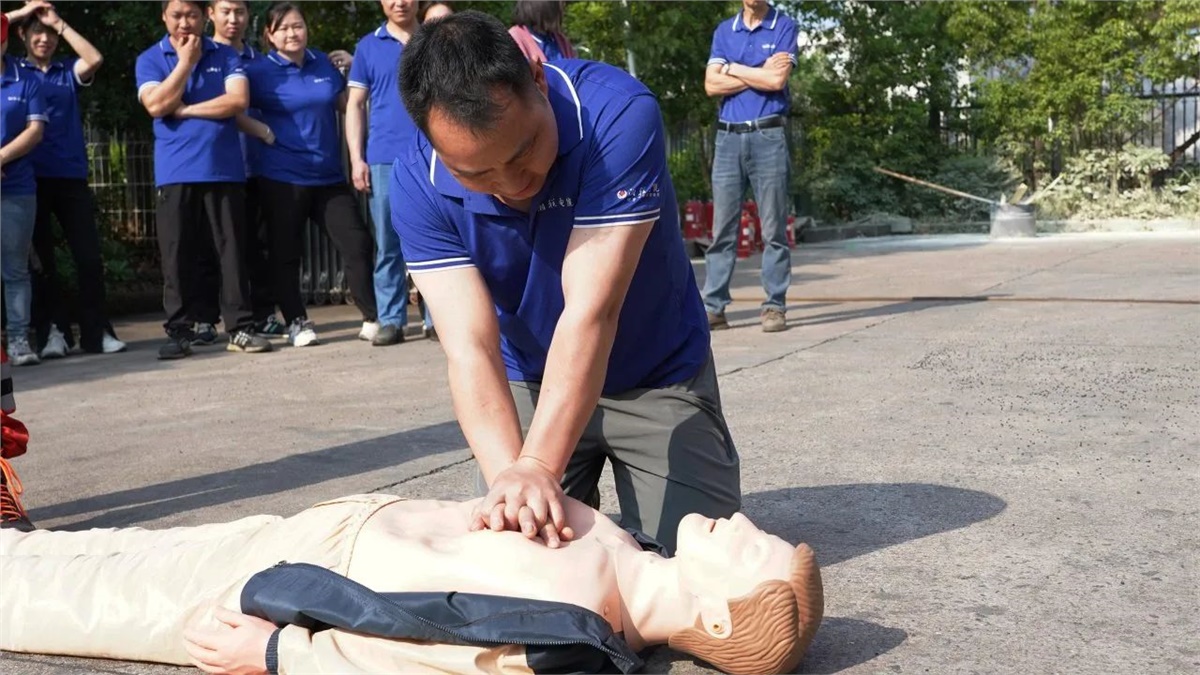隨后,在現(xiàn)場設(shè)置的模擬“起火點”,大家有序排隊進行了滅火器實操演練,以確保每位員工都能正確掌握滅火器的使用方法。同時,現(xiàn)場也模擬了心肺復(fù)蘇(CPR)急救和有限空間作業(yè)應(yīng)急救援等場景,完整呈現(xiàn)了“火災(zāi)發(fā)生—緊急疏散—現(xiàn)場救援—120轉(zhuǎn)運”的全流程,整個實操演練過程組織嚴(yán)密、分工明確,達到了既定的演練目標(biāo)和成效。