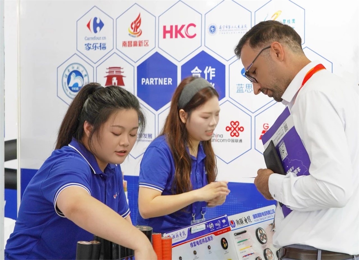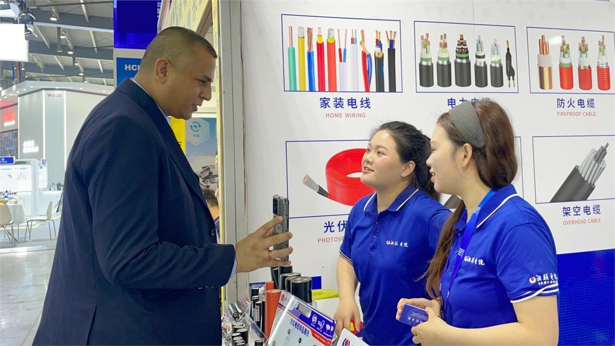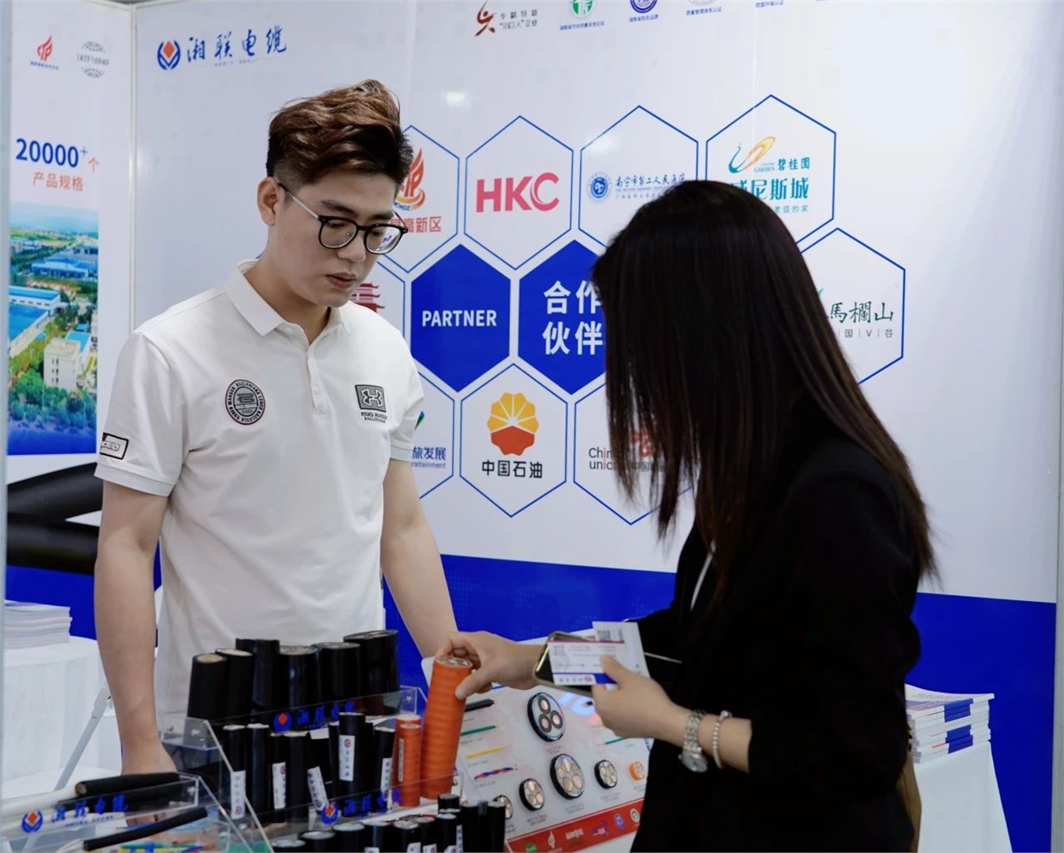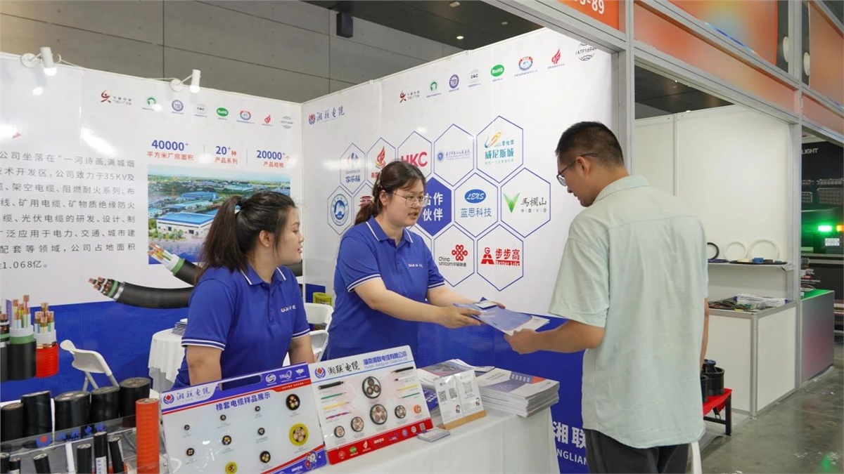 在展會(huì)現(xiàn)場(chǎng),湘聯(lián)電纜圍繞光伏發(fā)電、新能源汽車(chē)、重型裝備等發(fā)展應(yīng)用場(chǎng)景,與國(guó)內(nèi)外參展觀(guān)眾就電線(xiàn)電纜的解決方案展開(kāi)深入溝通與交流,生動(dòng)呈現(xiàn)了公司產(chǎn)品在建筑工程、能源、電力等領(lǐng)域的廣泛應(yīng)用,贏得了廣泛關(guān)注。