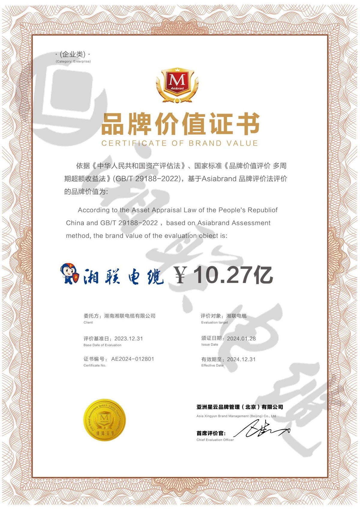 2月,以“凝聚先行力量,啟航星辰大?!睘橹黝}的2024第四屆品牌強國先行論壇在佛山三龍灣舉行,在此次論壇上,品牌強國先行工程國貨之光計劃全面啟動,憑借著消費者的良好口碑和行業(yè)內(nèi)的高度認可,湘聯(lián)電纜成功入選品牌強國“國貨之光”培育工程。