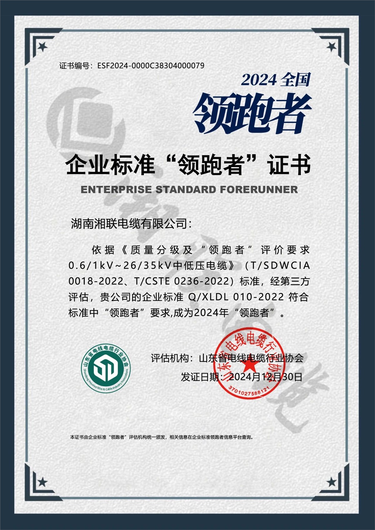 近日,2024年度企業(yè)標(biāo)準(zhǔn)“領(lǐng)跑者”名單發(fā)布,湘聯(lián)電纜Q/XLDL010-2022、Q/XLDL018-2023、Q/XLDL016-2022三項企業(yè)標(biāo)準(zhǔn)榮獲2024年企業(yè)標(biāo)準(zhǔn)領(lǐng)跑者,這也是湘聯(lián)電纜連續(xù)第三年獲此殊榮。