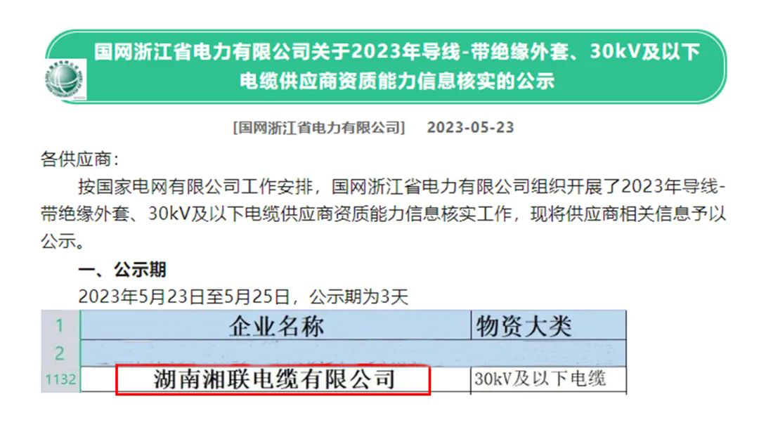 5月,憑借出色的產(chǎn)品品質(zhì)、優(yōu)質(zhì)的服務(wù)和良好的聲譽(yù),湘聯(lián)電纜通過了審查,成為2023年國(guó)網(wǎng)供應(yīng)商。