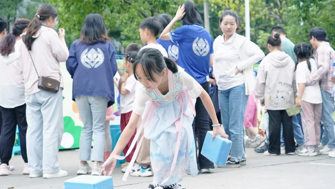 運動會后,小朋友們在“湘聯(lián)寶貝歡樂集市”領(lǐng)取了零食禮包和科普實驗套裝,孩子們捧著禮物,臉上洋溢著滿足與幸福。